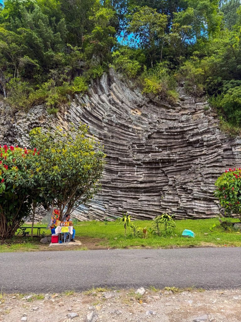 Po drodze warto zatrzymać się przy Los Ladrillos, formacjach bazaltowych przypominających ogromny mur z cegieł. To popularne miejsce wspinaczkowe, ale nawet jeśli nie planujecie się wspinać, skały same w sobie robią wrażenie i tworzą wyjątkowy krajobraz.