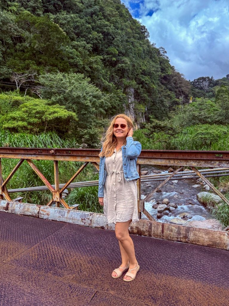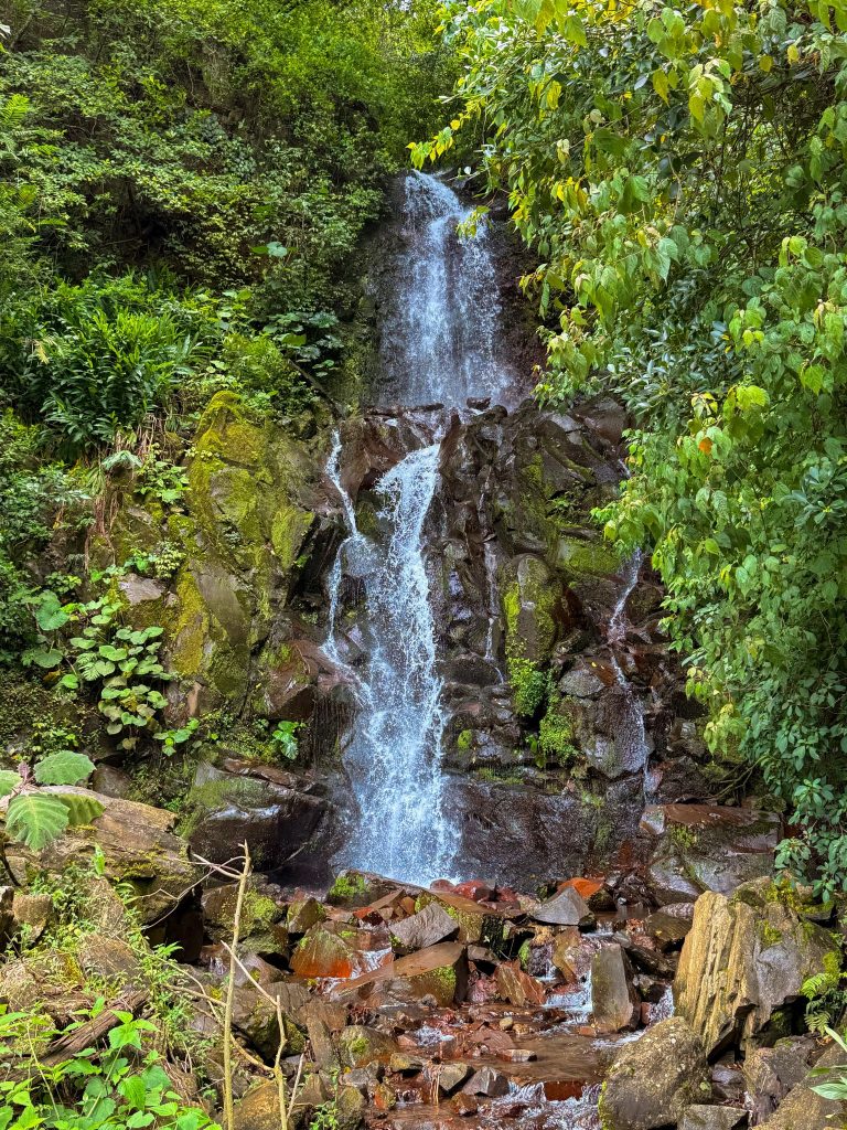 Na szlaku panuje przyjemny chłód – około 23 stopnie – ale warto mieć odpowiedni strój i solidne buty. Moje adidasy nie były wystarczające. Można też zanurzyć się w naturalnych basenach u stóp wodospadów, co jest świetnym sposobem na odświeżenie się po wysiłku (warto zabrać strój kąpielowy, ale woda jest zimna!).