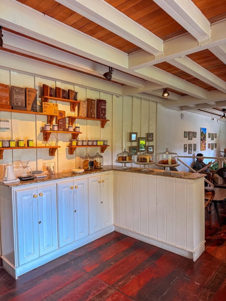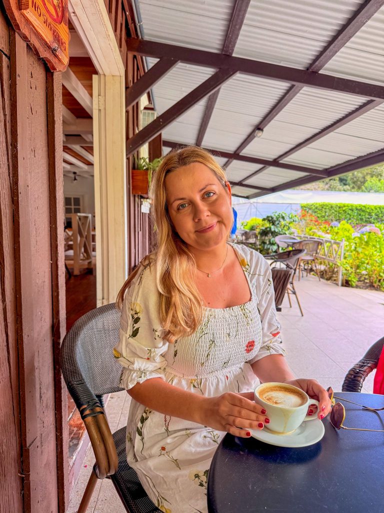 Sama wystawa jest dość kameralna i niewielka, ale to dopiero początek zwiedzania. Do kompleksu należy przepiękny ogród, który mieliśmy okazję obejść razem z właścicielką. Z ogromną pasją opowiadała nam o niezwykłych roślinach, niektóre z nich kryją naprawdę zaskakujące właściwości. Jedna z roślin, gdy ścisnąć ją w dłoni, uwalnia sok przypominający odżywkę do włosów, można go od razu nałożyć, a przy tym cudownie pachnie. W ogrodzie rosną też różowe banany, ozdobne odmiany imbiru, klasyczne bananowce czy plantacja kawy. Na zakończenie zwiedzania można usiąść w klimatycznej kawiarence, napić się świeżo parzonej kawy i spróbować domowych ciasteczek.