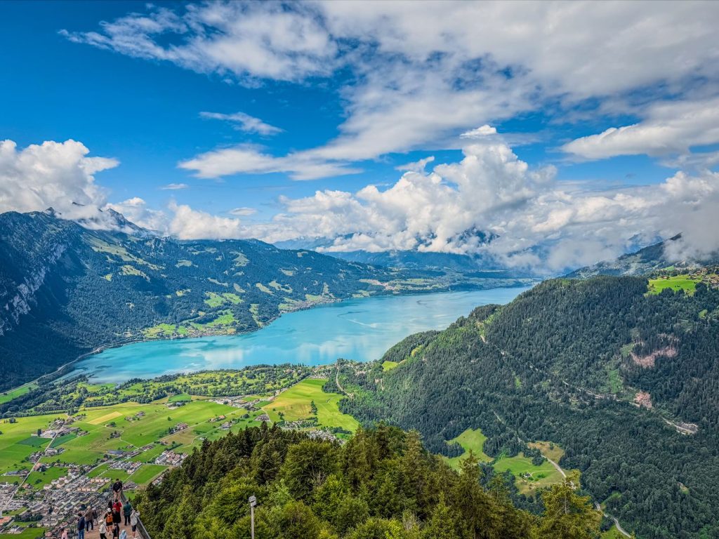 To punkt widokowy na 1322 m n.p.m., z którego widać jeziora i szczyty Eiger, Mönch oraz Jungfrau. Widok wart każdego kroku, a w moim przypadku, wjazdu kolejką. Bowiem na Harder Kulm można wjechać kolejką, z której widoki są magiczne.